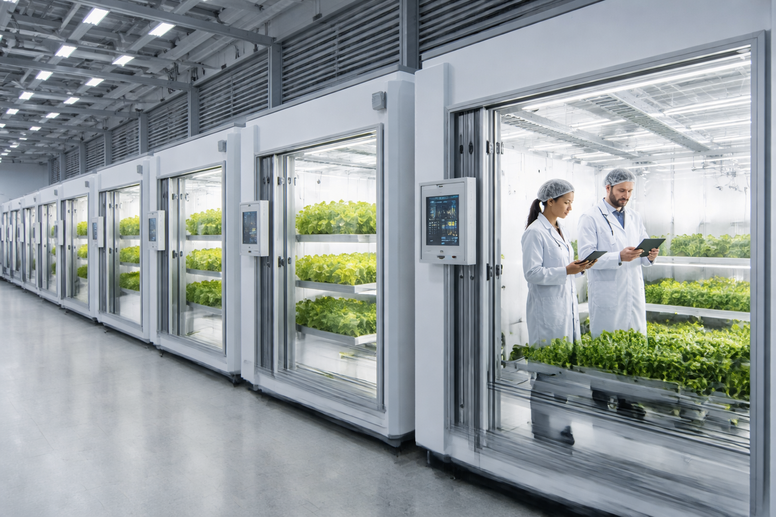 Each Grow Pod has an independent control panel and consumes 100,000–150,000 kWh per year. The overall power load for LED-equipped Pods is 15,000 W.